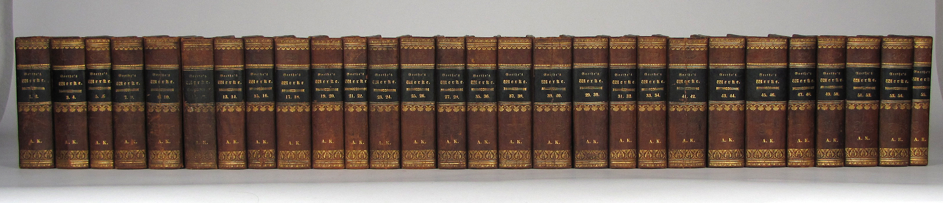 Dekorativ gebundene Taschenausgabe der Werke letzter Hand, ohne die 1842 erschienen Bde. 56-60 und das Register von Musculus von 1835.– Von guter Gesamterhaltung.– Hagen 23, C/1. Hirzel A 411.