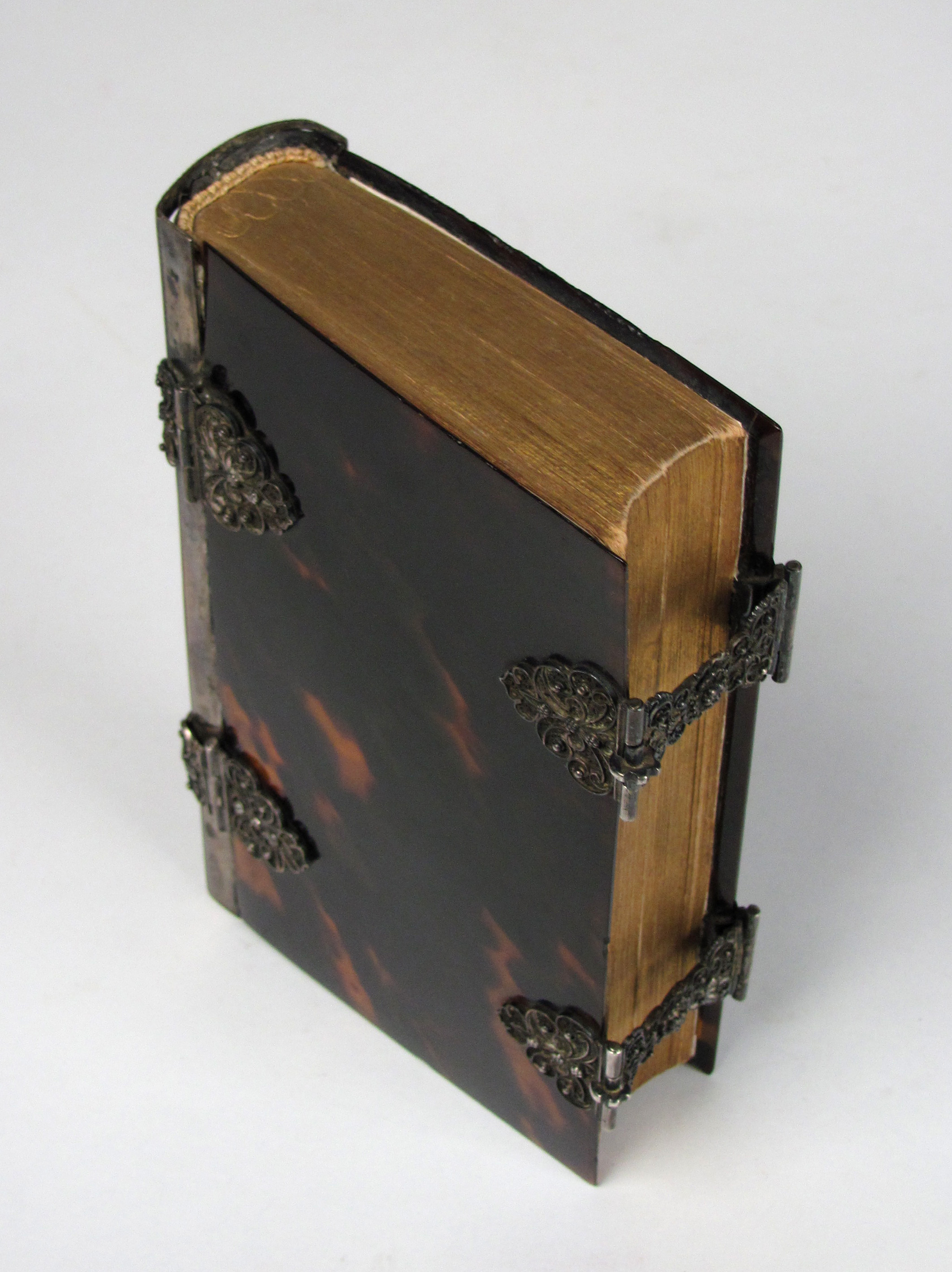 Dekorativer und sehr gut erhaltener Schildpatt-Einband, zusätzlich reizvoll durch die Silberfiligran-Arbeiten. Buchblock original und gut erhalten.