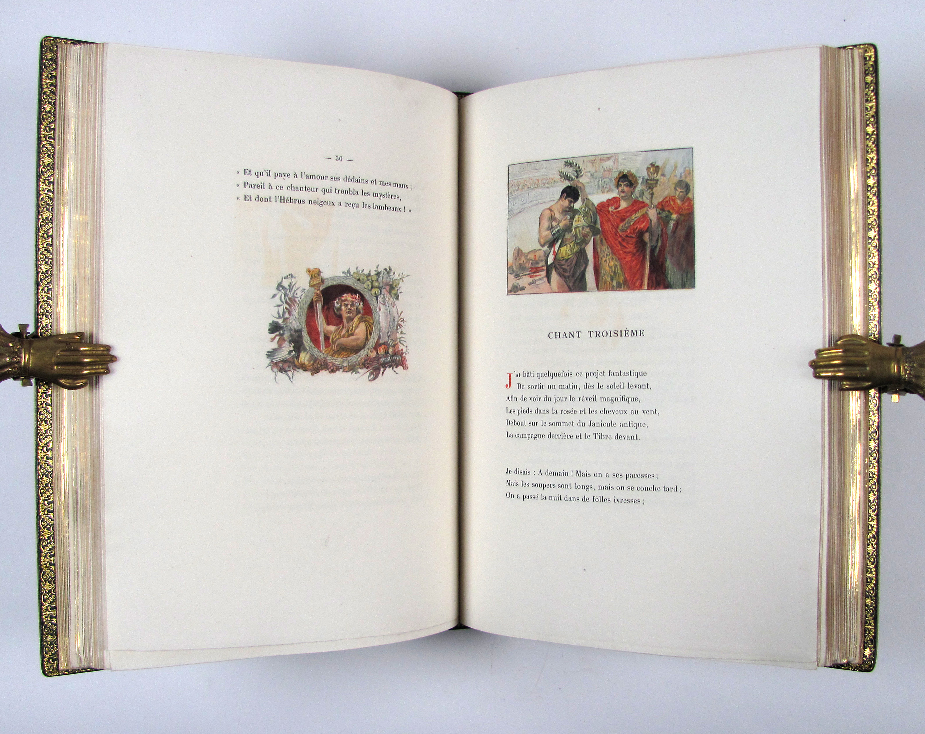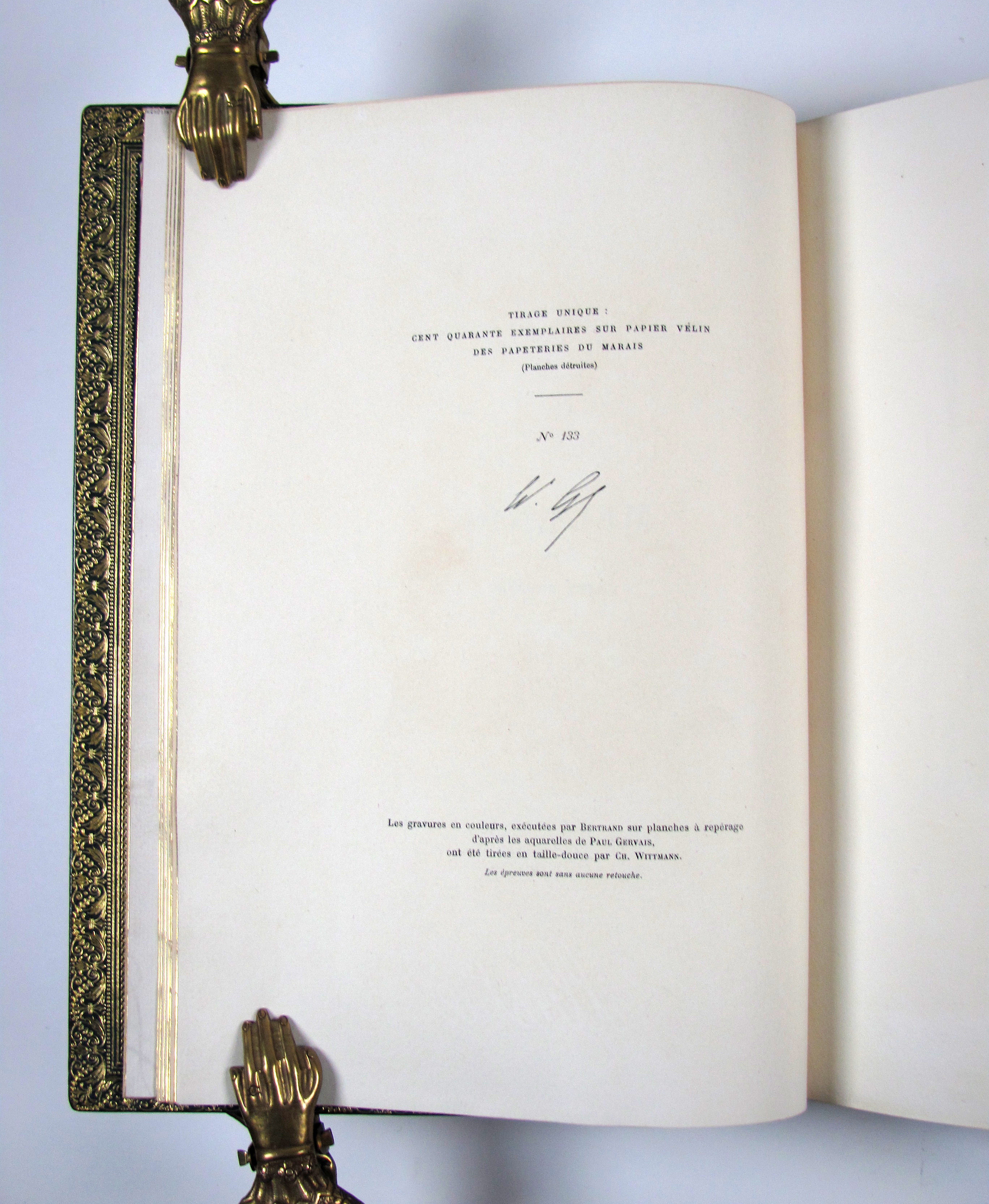 Nr. 133 von 140 Exemplaren. Von dieser Gesamtauflage auf grossem Vélin-Papier gelangten lediglich 100 Exemplare in den Handel.– Rücken ganz minimal verblasst, ansonsten sehr schönes, absolut frisches Exemplar.– Mahé, Livres de Luxe, I, 318. Monod 1751.