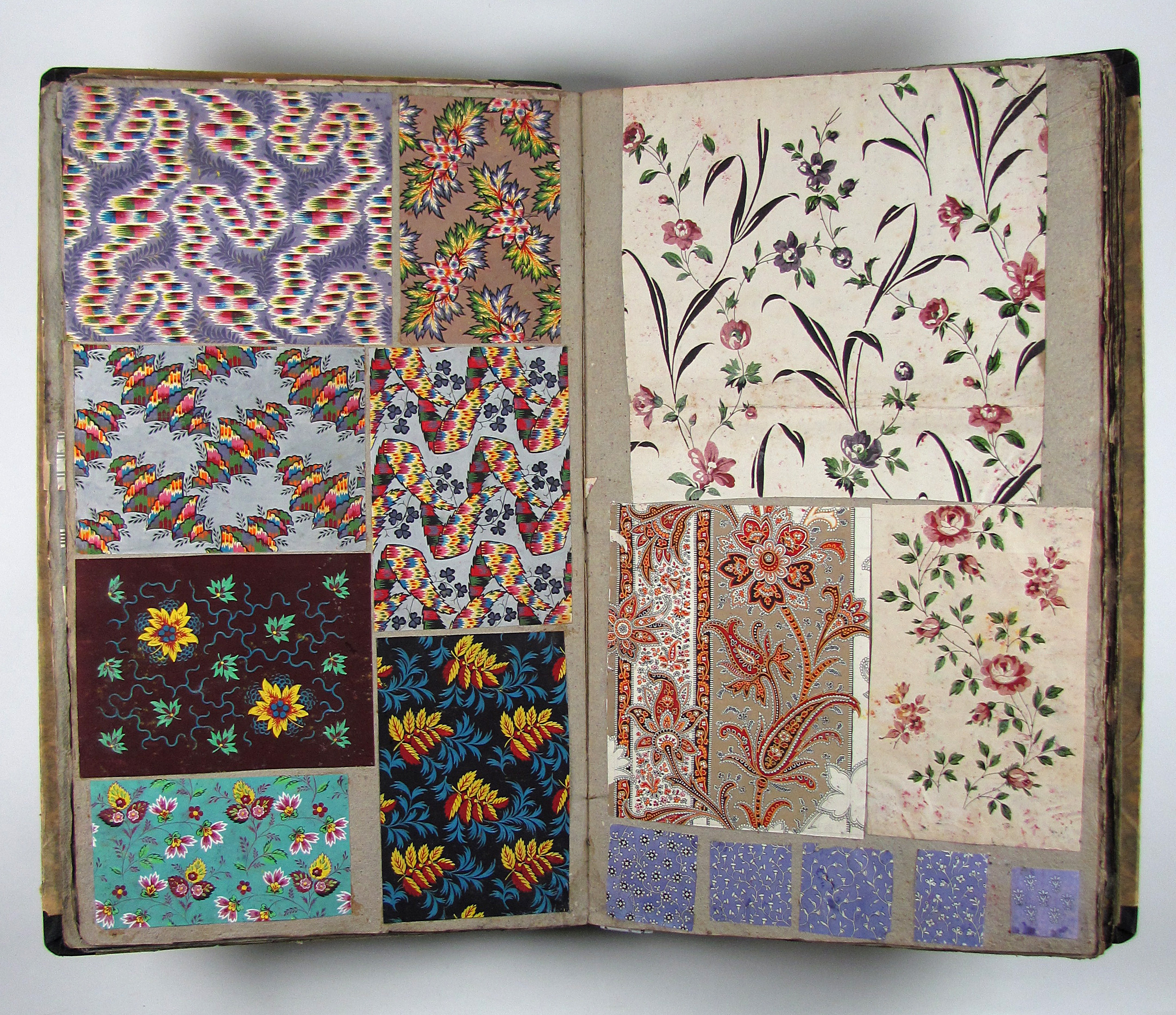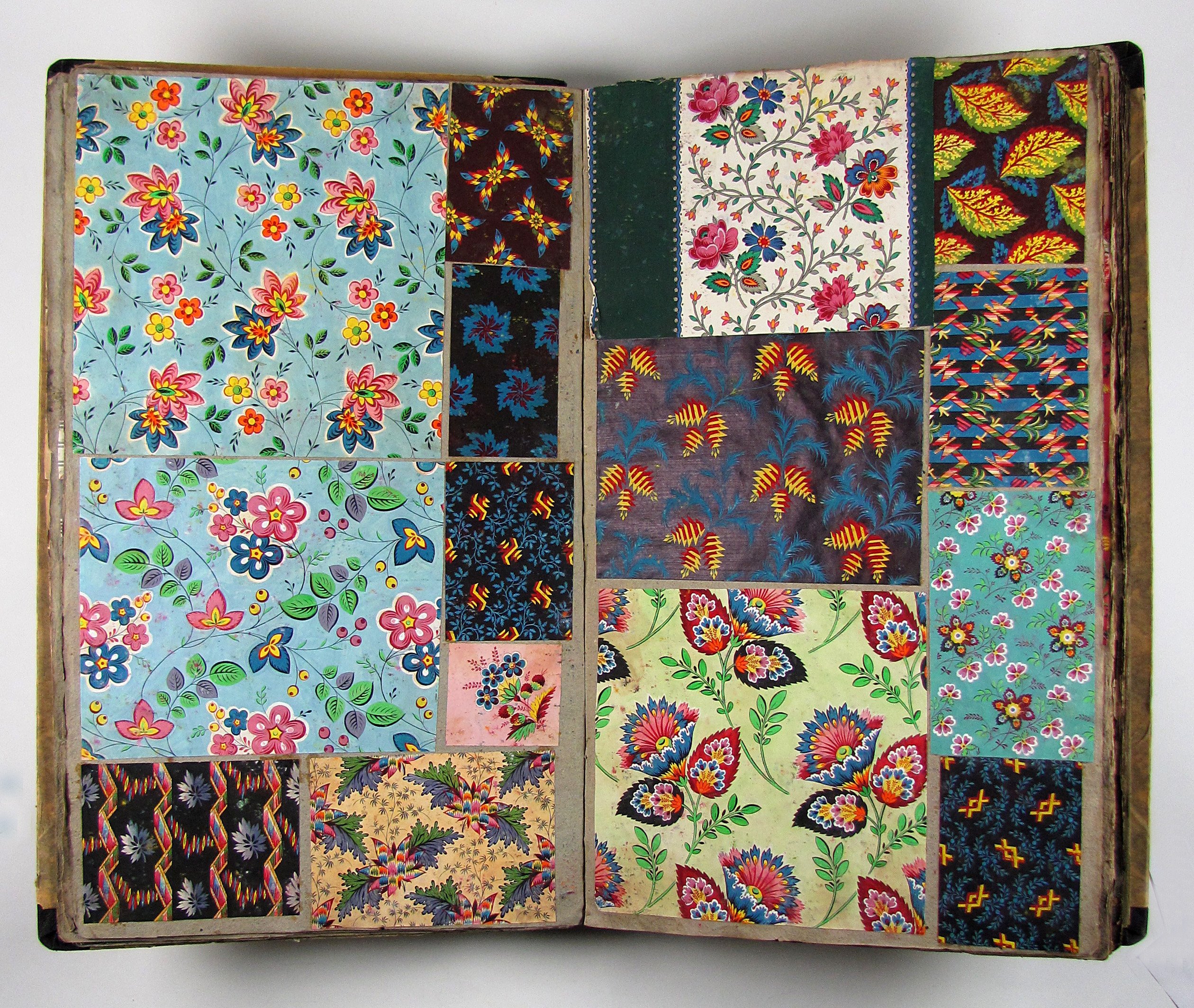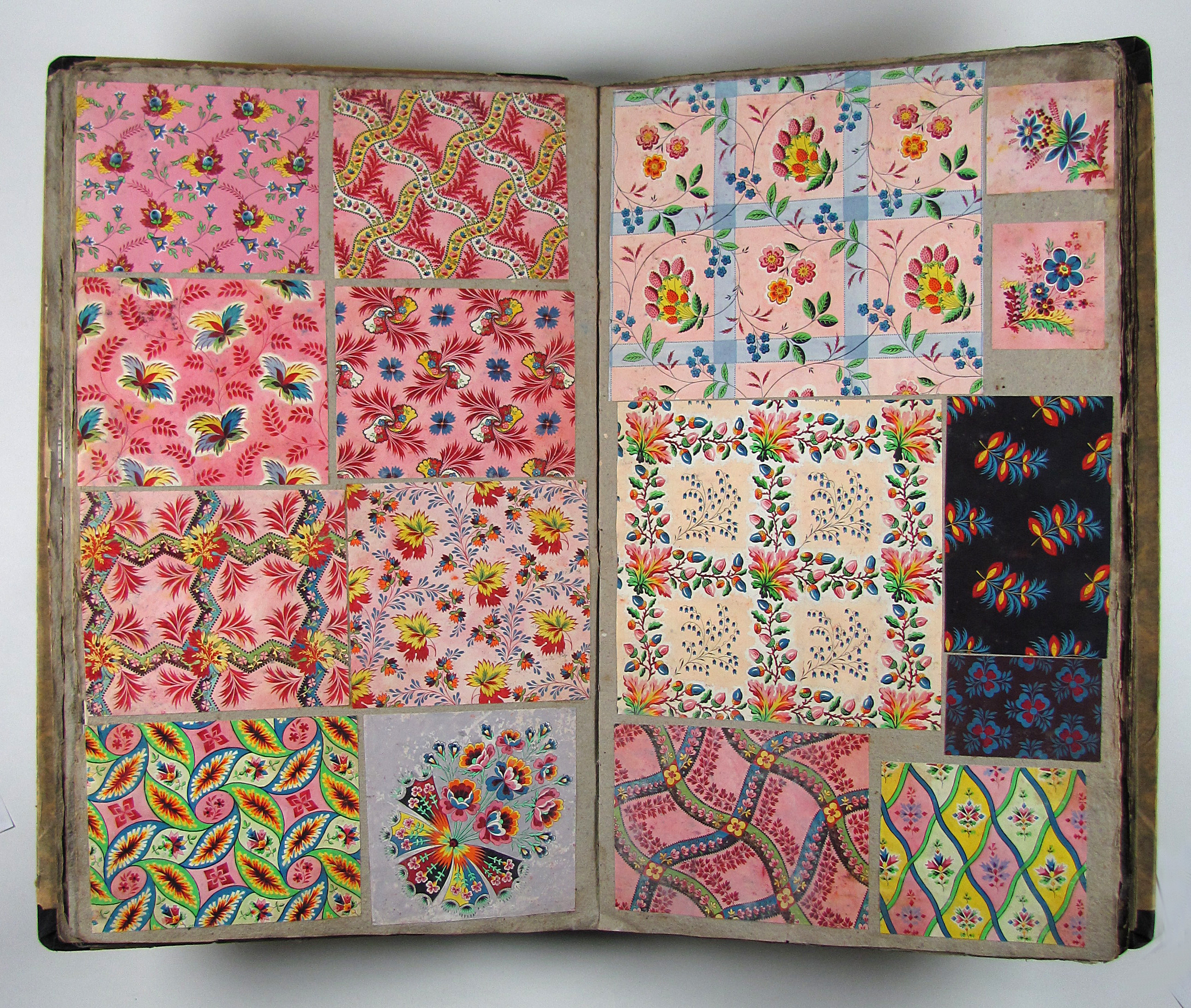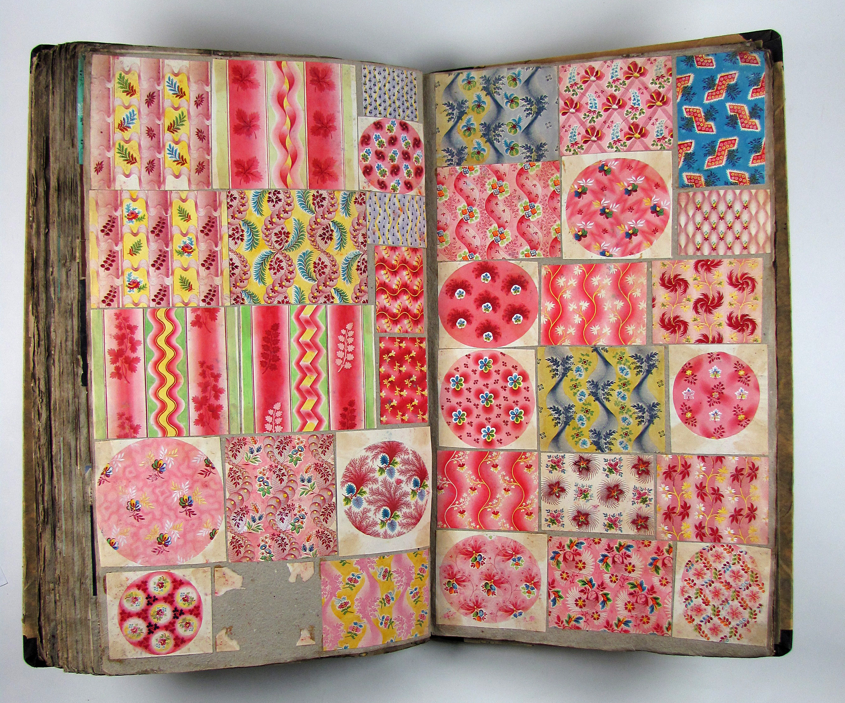 Album mit über 1.900 (!) Originalentwürfen von Stoffmustern auf Papier.