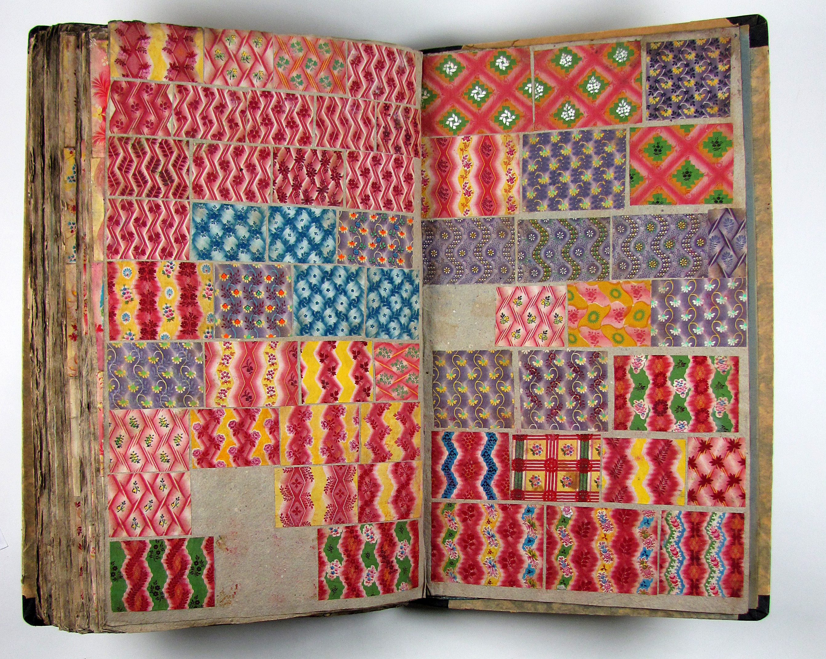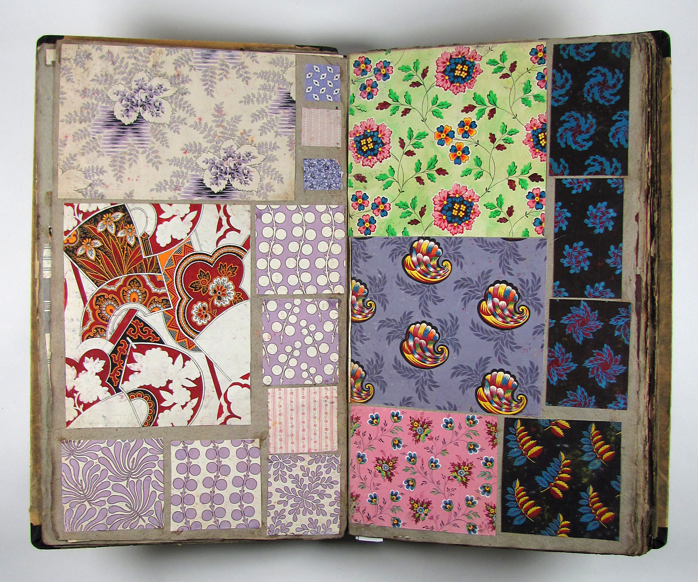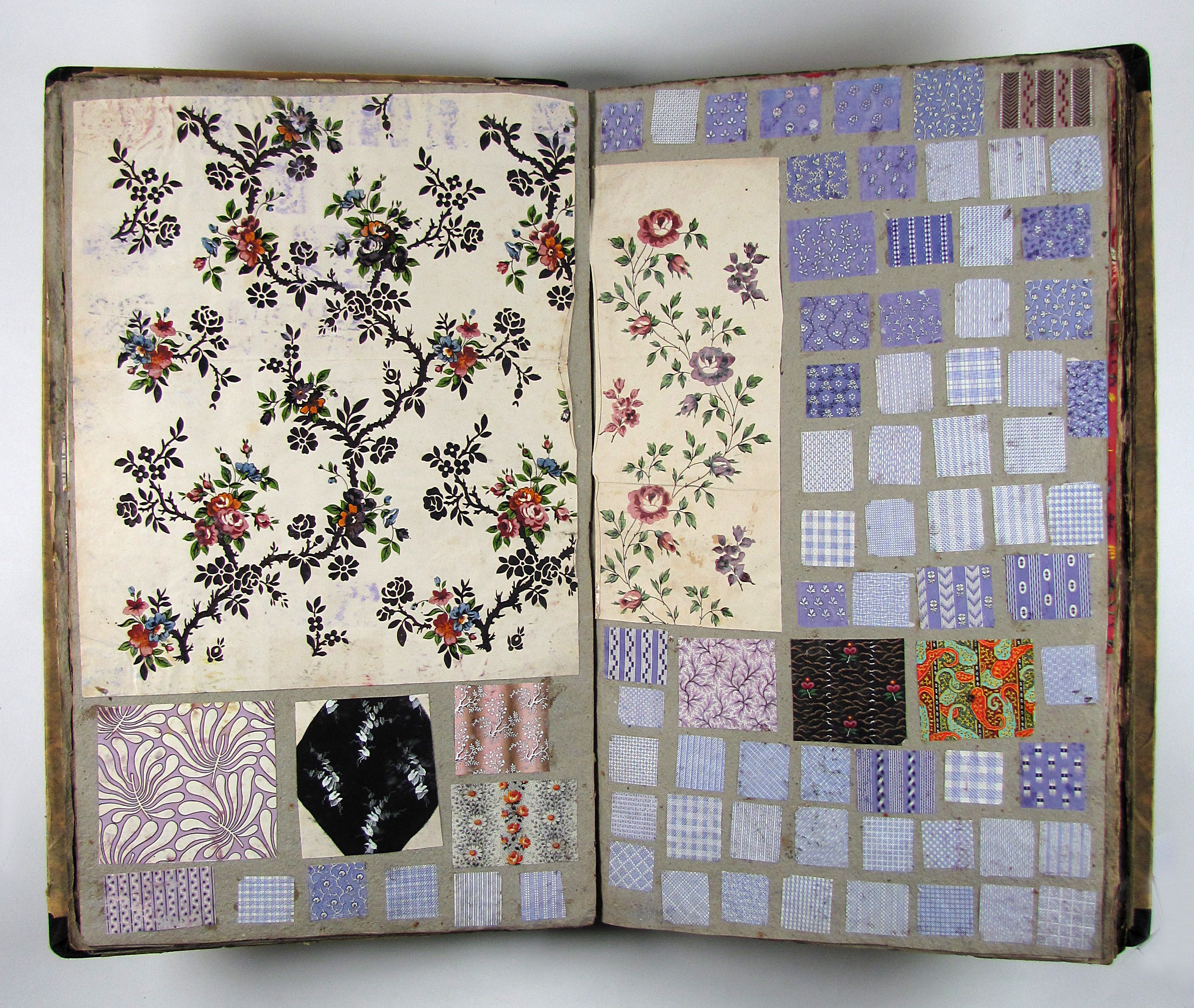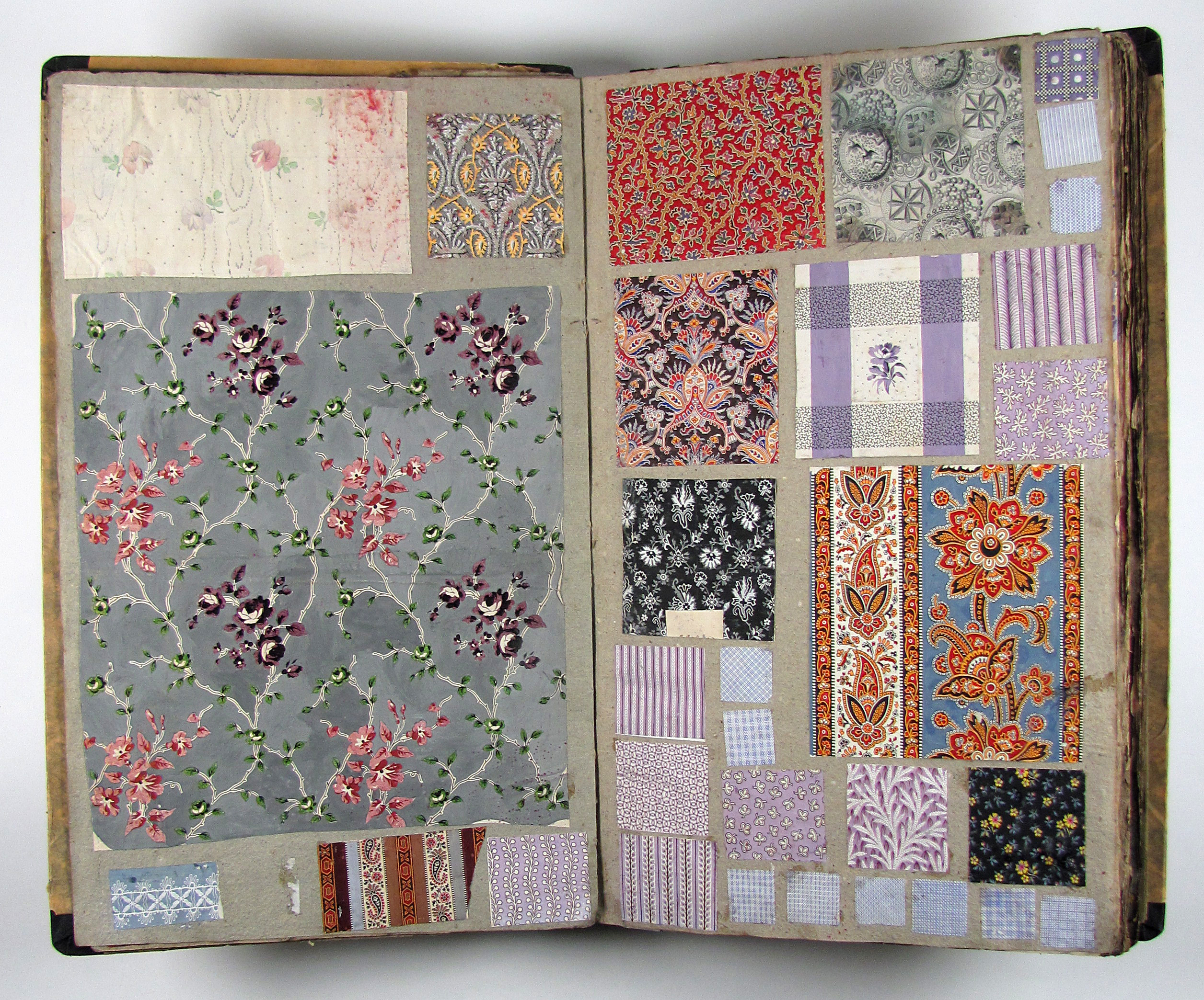Album mit über 1.900 (!) Originalentwürfen von Stoffmustern auf Papier.
