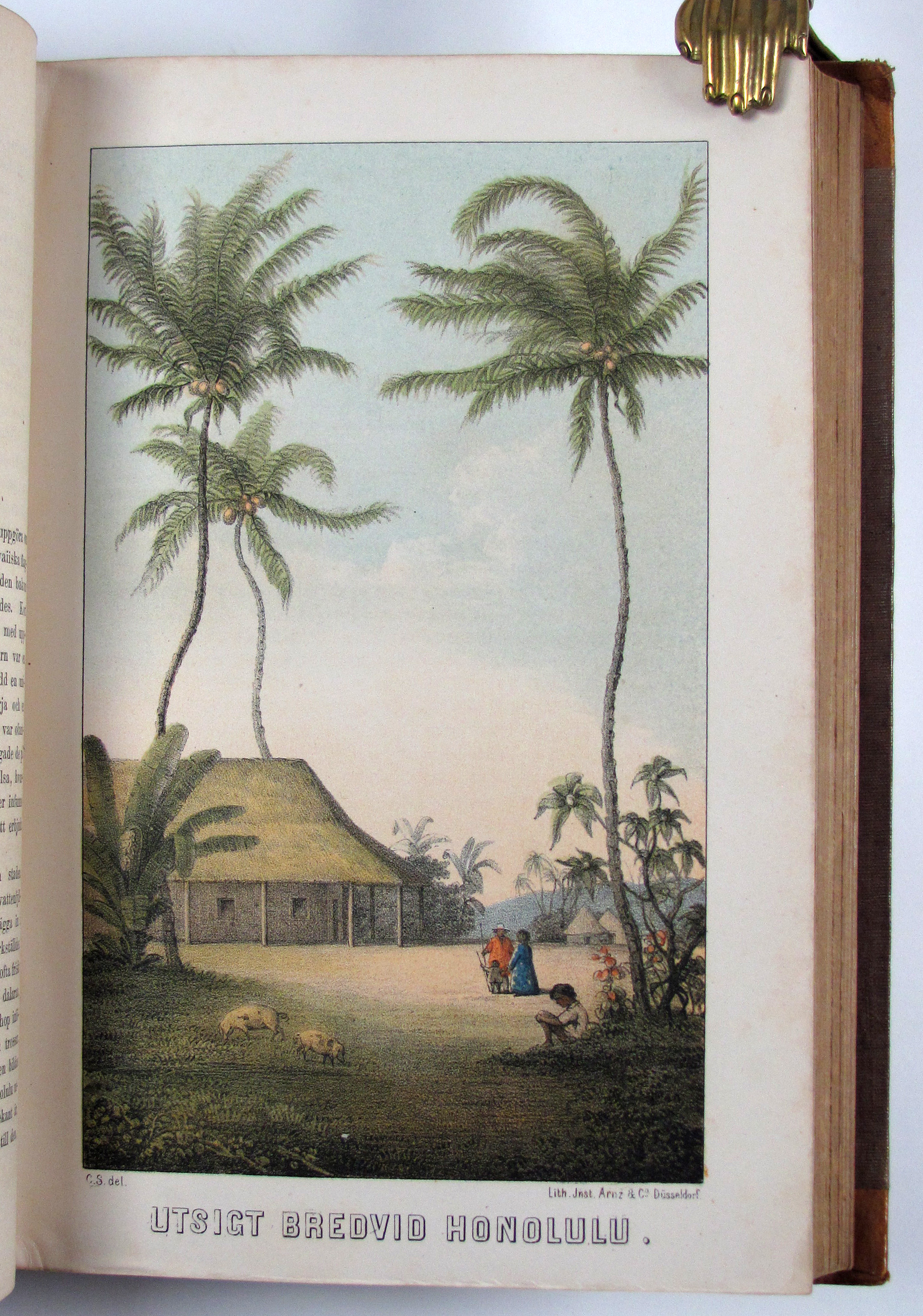 Erste Ausgabe der Beschreibung dieser Weltreise. Die Tafeln zeigen indigene Völker in ihren Trachten und Landschaften.– Vereinzelt etw. gebräunt bzw. leicht fleckig.– Nederl. Scheepv. Mus. I, 148.