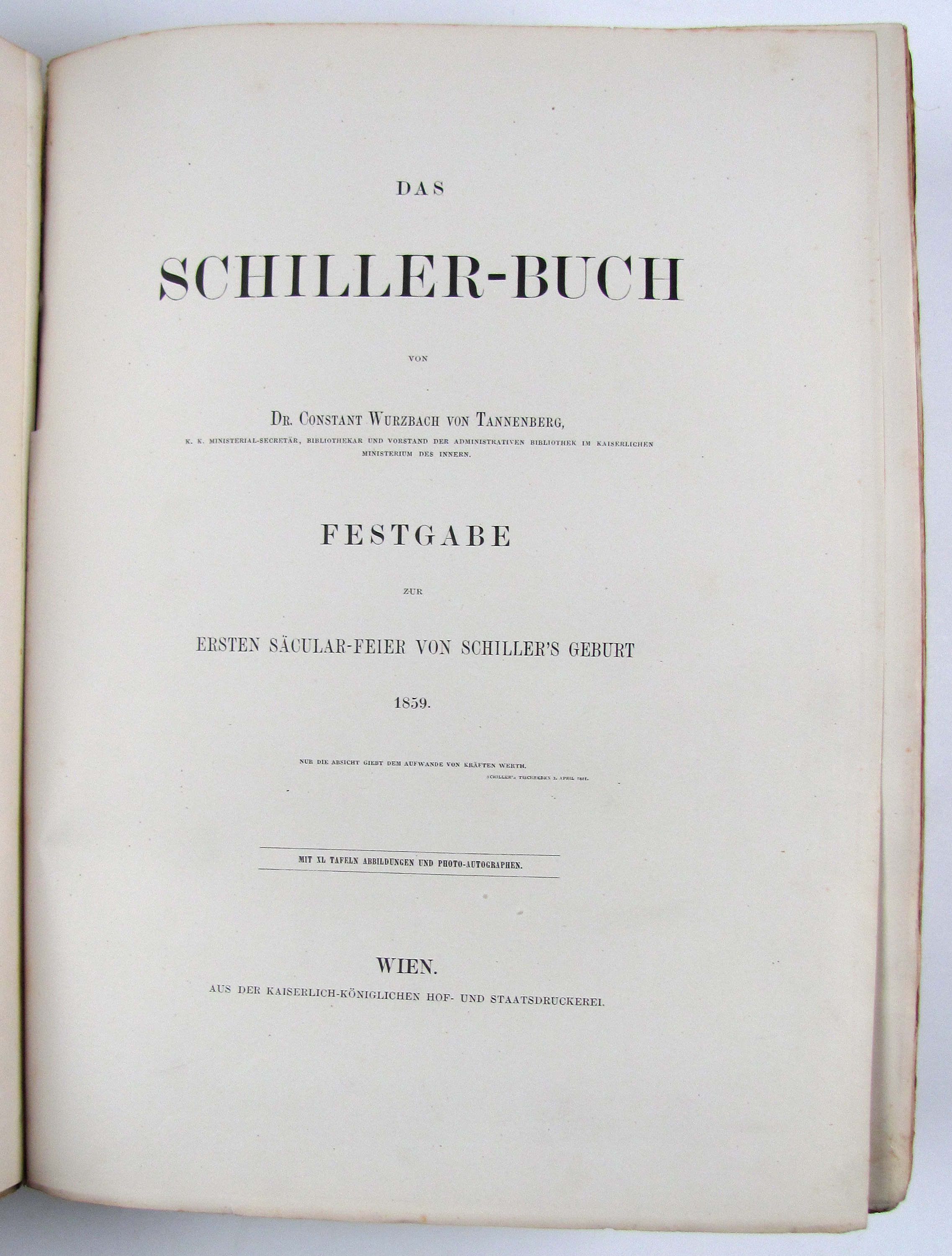 Wurzbach von Tannenberg, Constant, Das Schiller-Buch. Festgabe zur 1. Säcular-Feier von Schillers Geburt.