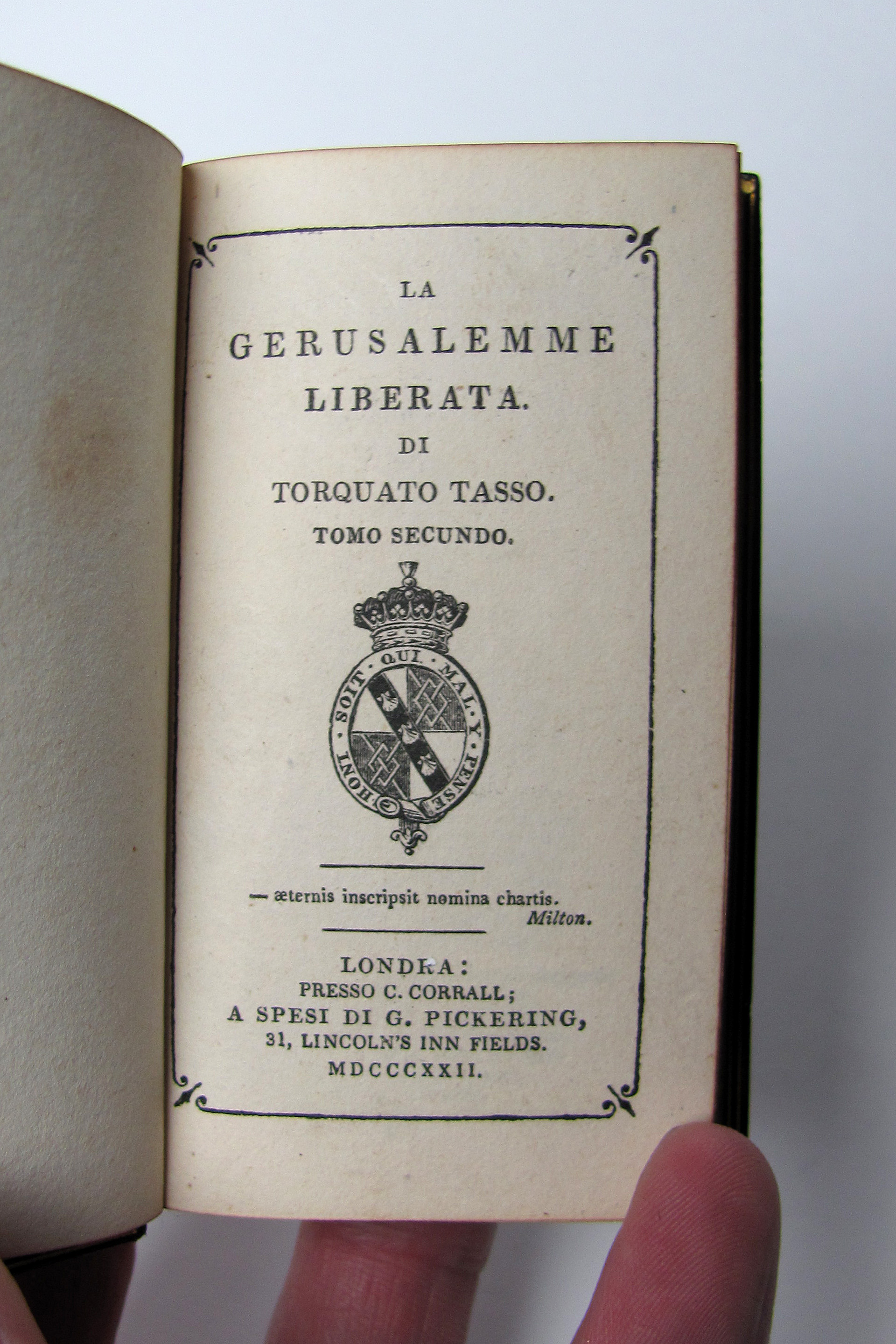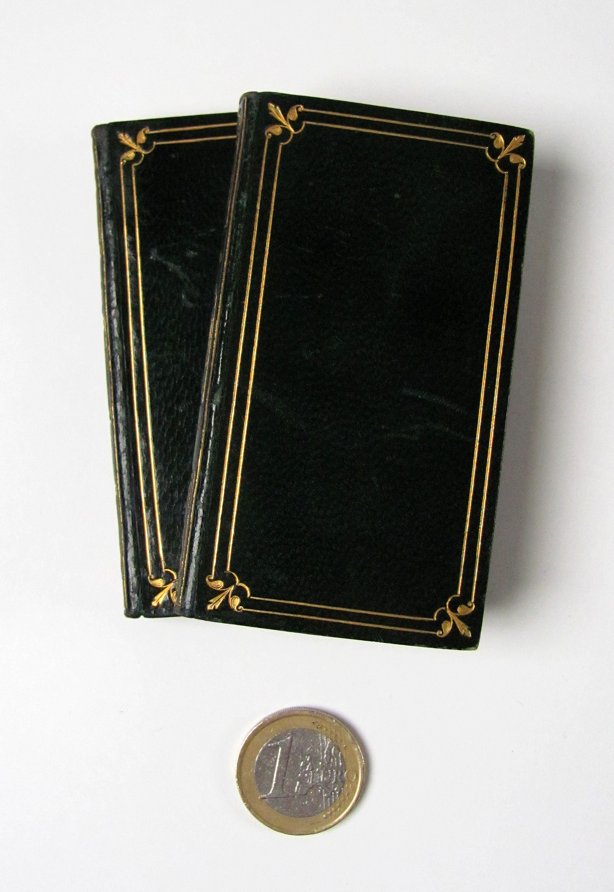 2 Bde. 89 x 49 mm. 1 Bl., 405 S. (durchlaufend paginiert). Mit gestoch. Porträt und gestoch. Titel. Nachtblaue Maroquinbde. der Zeit mit Rücken-, Deckel-, Steh- und Innenkantenvergoldung sowie Goldschnitt.