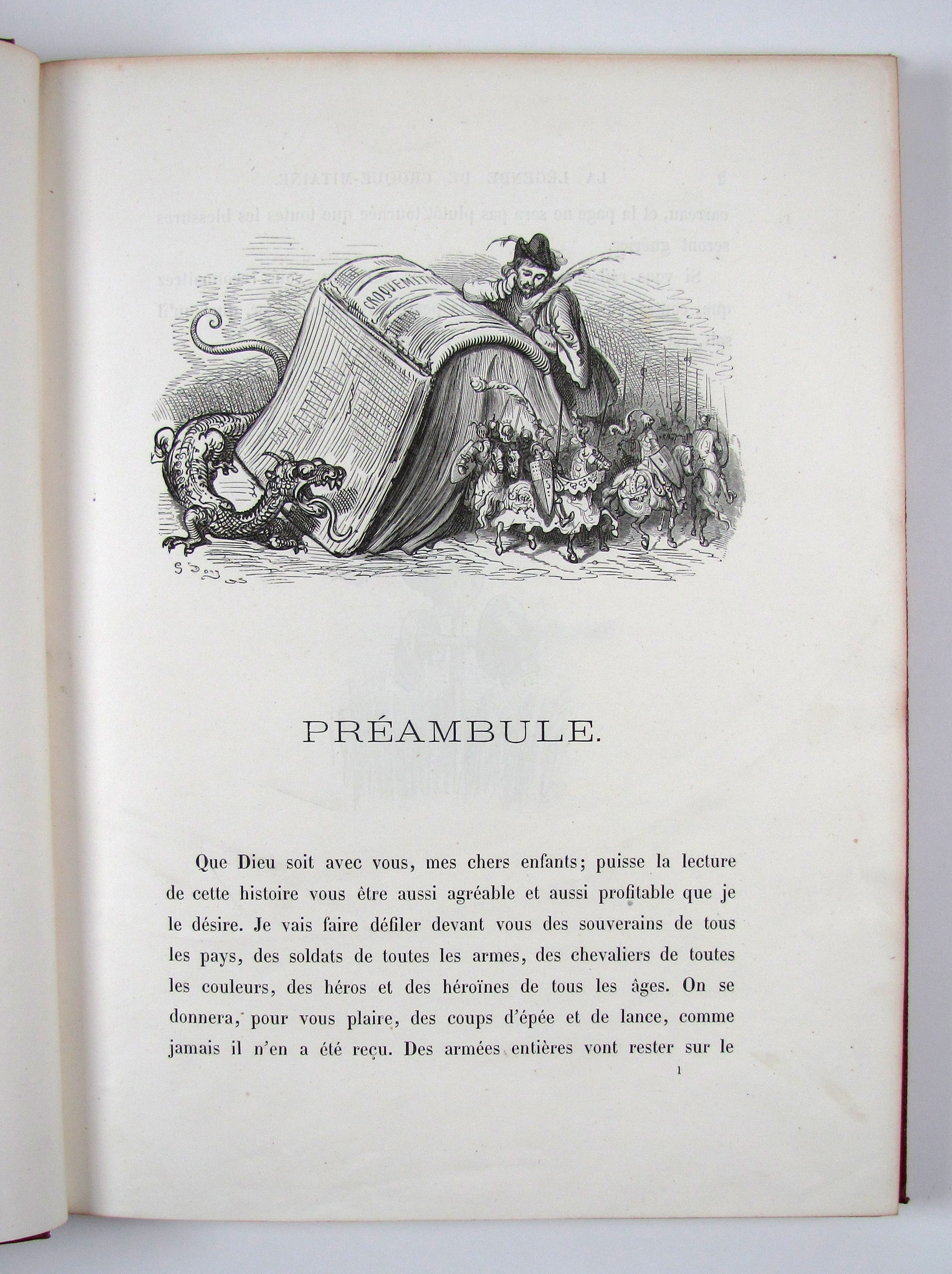 Erster Druck der ersten Ausgabe.– Spritzige Illustrationen im typisch ironischen Stil Doré’s, sehr passend zu dieser Persiflage auf alte französische Geschichte.– Gutes Exemplar.– Leblanc 221. Sander 435. Brivois 255.